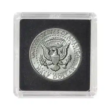 Firstly, the coin holder case protects your coins from damage, such as scratches and abrasions. In addition, it also provides a convenient way to showcase and organize your collection. Each coin holder features a clear, archival-quality polystyrene plastic window, which allows easy viewing of your coins’ obverse and reverse. Furthermore, the double-sided insert shows black or white (for identification purposes, one can write on the white side for labeling). Most importantly, the coin case securely holds the coin in place. Generally, ensuring it doesn’t move around or get accidentally dropped during handling. Finally, they fit in standard 2×2 boxes for easy storage.