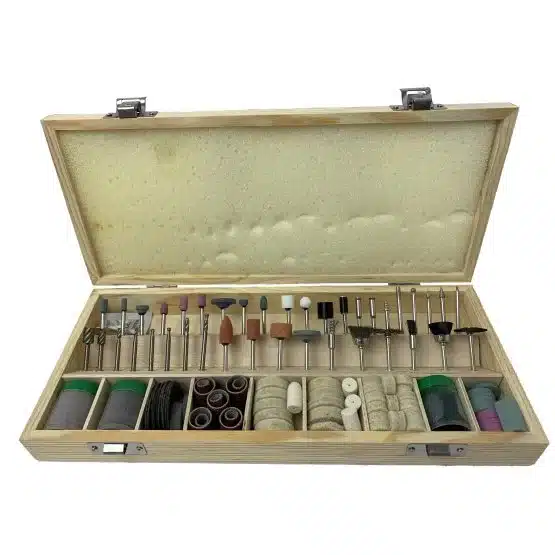 - Organized Storage: Comes in a convenient wooden storage box that keeps all accessories organized, making it easy to identify and access the right tool for any job.