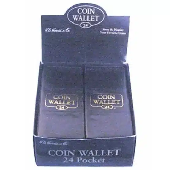 Introducing the 24-pocket HE Harris Coin Wallets, designed specifically to accommodate staple-type mylars or flips. These wallets are perfect for organizing and displaying your coin collection in small-sized albums. All in all, this provides a compact storage solution that keeps your coins safe and secure. With 24 pockets, you can neatly arrange your coins, making it easy to browse and showcase your prized possessions.