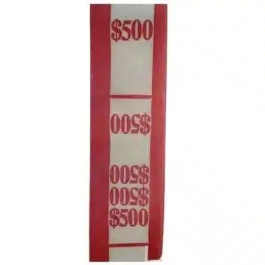 NF String $500 red money bands for cash are great for banks, supermarkets, casinos, arcades, hotels, retail shops, currency exchanges, and laundromats.