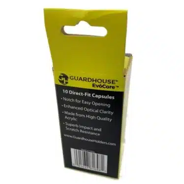 Display your valuable coins with our Evocore direct fit air-tite coin capsule by Guardhouse. These holders are designed for long-term use and fit various coins perfectly. Archival-grade, scratch-resistant acrylic, provides excellent visibility while safeguarding your coins from damage. Purchase now to keep your collection in pristine condition!