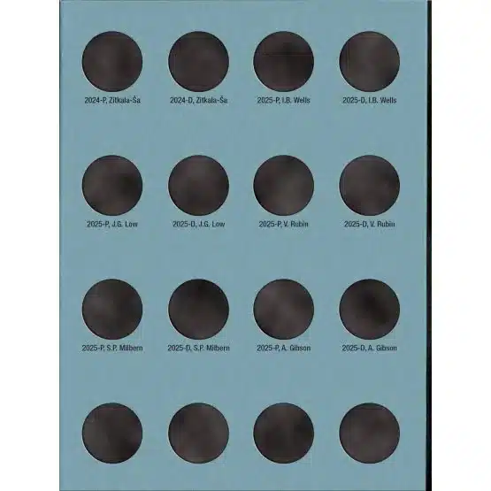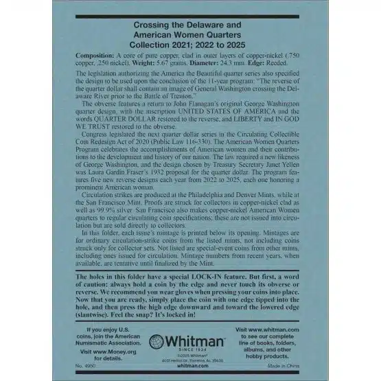 Introducing the American Women Quarters Folder with beautifully crafted openings from 2021 to 2025. This exclusive folder celebrates the achievements and contributions of remarkable American women throughout history. Add the American Women Quarters Folder 2021-2025 to your collection today!