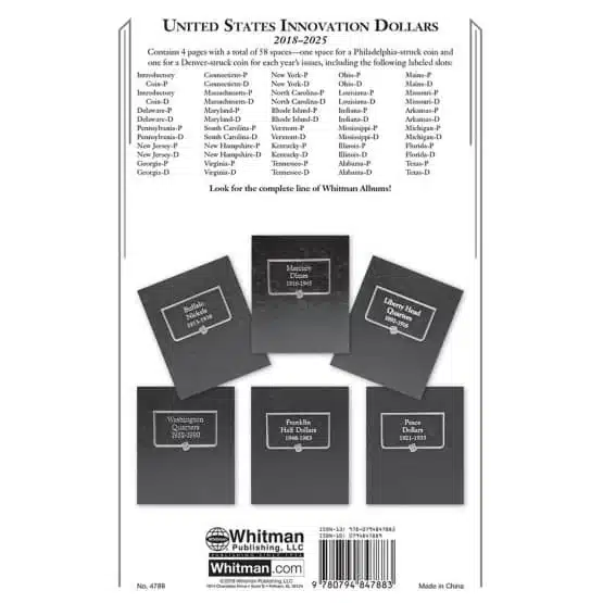 American Innovation Dollar Album 2018 to 2025, Philadelphia and Denver Mints, a Whitman Classic