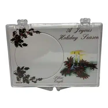 Introducing the Holiday Season snap lock, designed specifically for collectors needing the American Silver Eagle 1 oz holders for display purposes. Moreover, Edgar Marcus designs these coin holders from premium, crystal-clear polystyrene ensuring maximum visibility of your American Silver Eagles. Each display holder protects the coin and also showcases unique and beautiful artwork, making it an excellent addition for collectors.