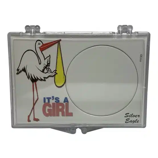 In conclusion, the It’s a Girl Stork American Silver Eagle snap lock coin holder offers the perfect blend of protection and style for any coin collector.