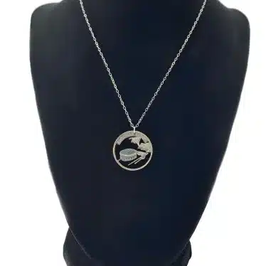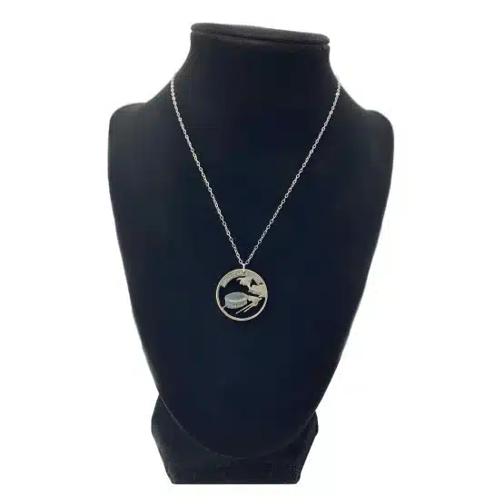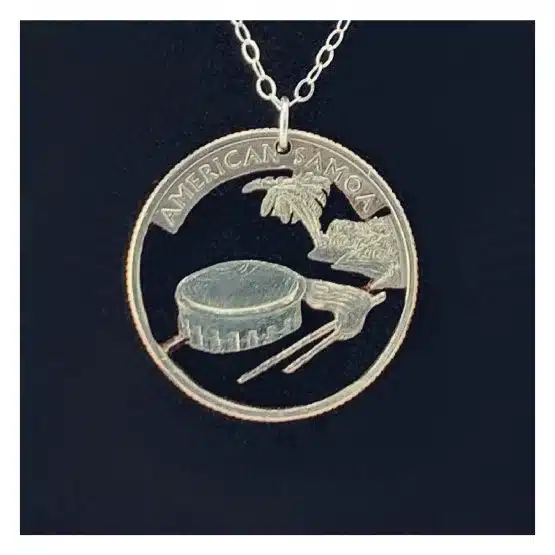 Moreover, crafted from a genuine American Samoa quarter, which is part of the 2009 District of Columbia and United States Territories Quarters Program. In short, this necklace features a design that captures the essence of American Samoa, known as the heart of Polynesia.