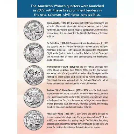 - Educational Value: This coin folder highlights the names of remarkable women, enriching collectors’ knowledge of American history.