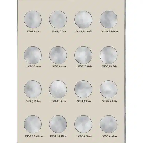 The American Women’s quarter dollars are a limited-edition series minted from 2022 to 2025, with five unique reverse designs released each year. These remarkable coins celebrate the contributions of significant American women whose achievements have left an indelible mark on the nation’s history. The Harris Brand Folder provides a beautiful and organized way to house both the Philadelphia and Denver Mint quarters, making it a perfect companion for collectors and admirers alike.