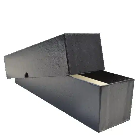 Black 9x2x2 storage box for coin holders and flips by Guardhouse. The single-row 9x2x2 regular duty box for holding 2×2 mylar coin flips is durable and strong with high-quality, textured exterior wrap. Use regular duty boxes for storage and organization of your precious collectibles.