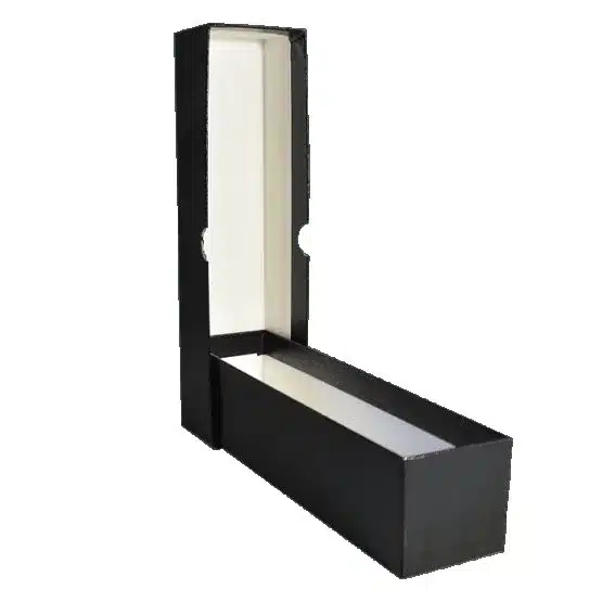 Black 9x2x2 storage box for coin holders and flips by Guardhouse. The single-row regular duty 9x2x2 coin box for holding 2×2 mylar coin flips is durable and strong with high-quality, textured exterior wrap. Use regular-duty 9x2x2 coin boxes for storage and organization of your precious collectibles. It holds up to 30 2×2 tetra snap locks and up to 100-coin flips.
