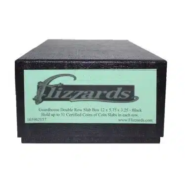 Introducing the black Guardhouse standard double row coin slab display boxes, designed to specifically organize and store slabbed coins. Moreover, the coin slab box holds 31 certified coins or coin slabs in each row and measures 12×5.75×3 inches. This basically makes it an essential accessory for any serious coin slab collector.