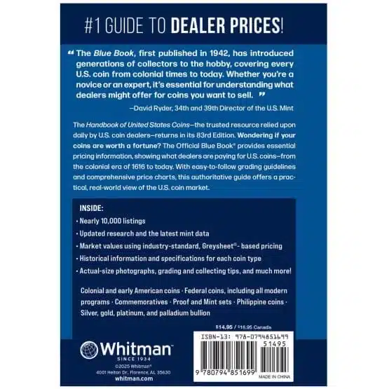 Additionally, with its authoritative price listings and extensive resources, the Blue Book allows collectors to determine their coins’ worth confidently. So, add this 2026 Blue Book Coin Values vital reference to your numismatic collection today!