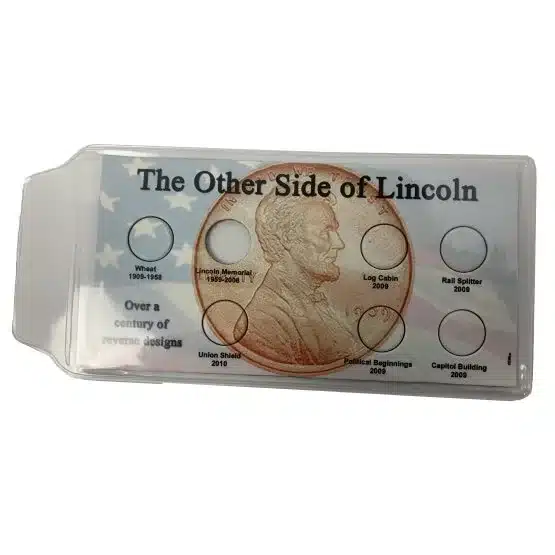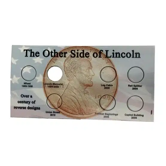 The Other Side of Lincoln Specialty Set Coin Holders for Collectors with Custom Vinyl Sleeve, an essential for coin enthusiast. This innovative product remains specifically designed to hold all seven Lincoln cent reverse designs from 1909 to 2010. It also provides a perfect solution for organizing and displaying these historic coins. Generally, ensuring that they are not only protected but also showcased in an attractive manner.