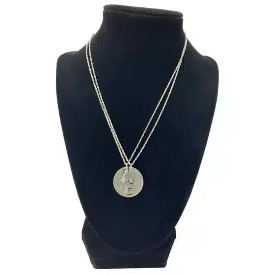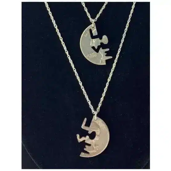 Further, the necklace features a beautifully crafted, “LOVE,” cut-out design made from an authentic Washington Quarter Dollar coin. It also embodies the fine art of coin piercing that dates back to the 16th century. Generally, when noblemen created such tokens for their true loves. This cute couples necklace also serves as a timeless reminder of affection and commitment.