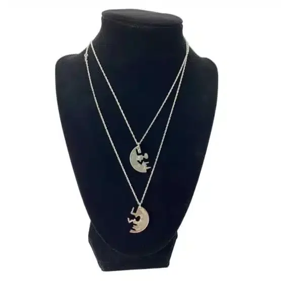 - His and Her Necklaces: Customized to reflect the words, ” LOVE”, adding a unique touch to this unique love cut necklace.