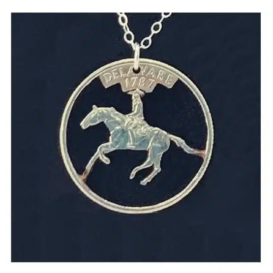 Furthermore, the Delaware State Quarter, minted in 1999, features a design paying homage to Caesar Rodney’s historic ride in 1776. Surely, as the first state to ratify the United States Constitution, Delaware holds a special place in American history. Thus, making this necklace a meaningful representation of state pride.