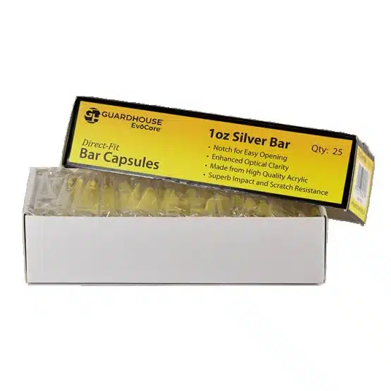 Unquestionably, the Evocore direct fit 1 ounce Silver Bar Holders by Guardhouse are the ideal solution for collectors and investors. Specifically, for those looking to protect and display their valuable 1 oz silver bars. These meticulously designed silver bar capsules ensure that each bar remains securely held while remaining visible for admiration.