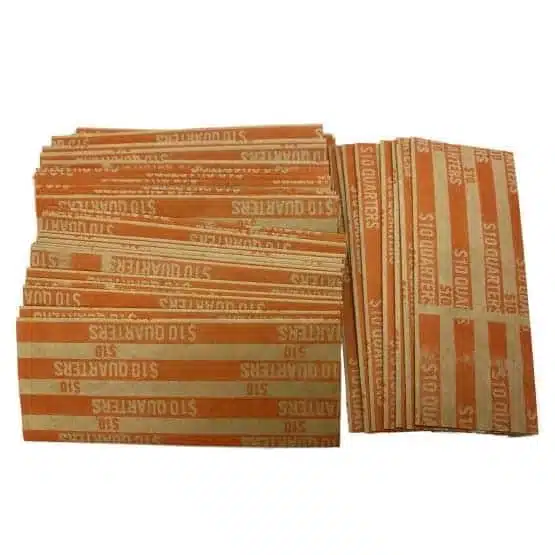 Save time and money with flat coin wrappers for quarters. To begin with, this efficient solution can revolutionize your coin storage and banking needs. Specifically, with their innovative design, our flat coin wrappers provide a space-saving alternative to traditional crimped end wrappers. As a result, they allow you to easily stack and sort your quarters, ensuring an organized and hassle-free experience.