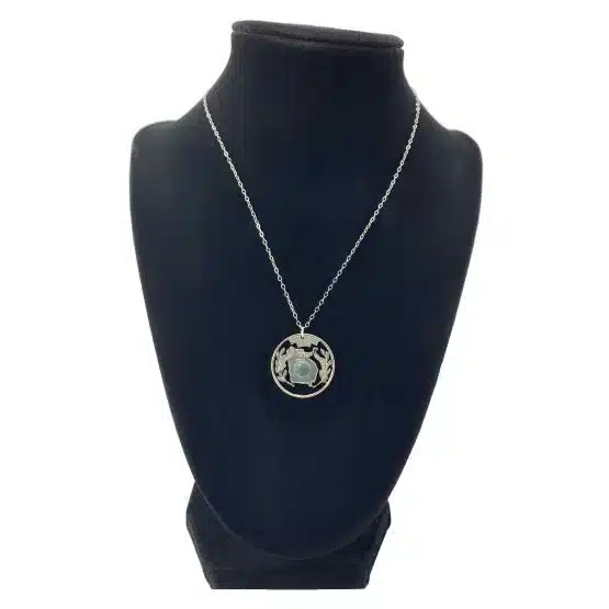 Crafted with attention to detail, this necklace features an intricately designed pendant that captures the essence of Georgia. In addition, the design showcases the iconic Georgia Peach set against an outline of the state, symbolizing its rich heritage. Notably, surrounding this imagery are branches of the state tree, the Live Oak, which cradle the design beautifully. Lastly, a banner elegantly displays the state motto: “Wisdom, Justice, Moderation.”