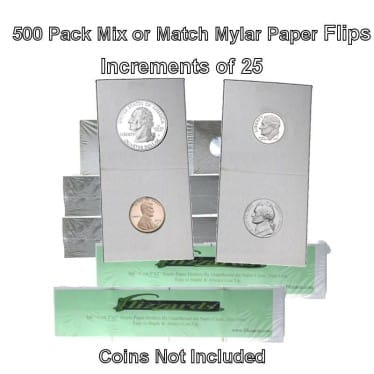In conclusion, the 500 Assorted Guardhouse 2×2 Cardboard Mylar Coin Flips are an exceptional investment for anyone looking to safeguard their coin collection. Furthermore, with the ability to customize your selection and the ease of use, these coin flips combine practicality with quality. Basically, ensuring that every coin remains in pristine condition for years. So, order your Guardhouse mylar coin flips and start organizing and displaying your coinage today!