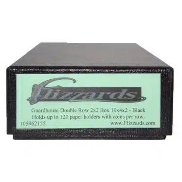The Guardhouse double row coin collector box remains an overall essential storage solution for coin collectors, combining style with functionality. Furthermore, this sturdy box measures approximately 10x4x2 inches and holds up to 120 paper holders filled with coins. Basically, making it perfect for organizing and storing your coin collections.