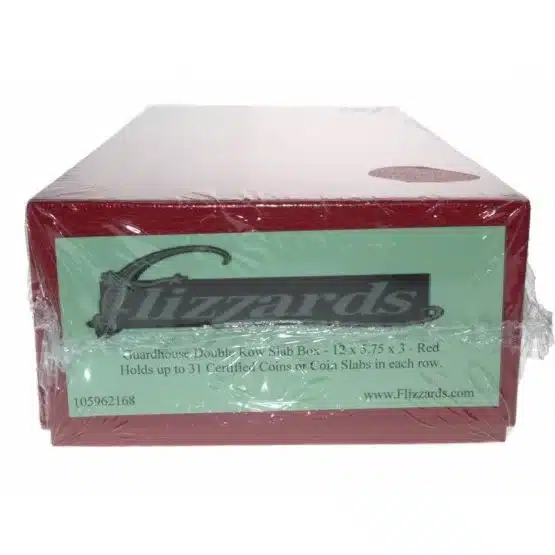 Introducing the red Guardhouse standard double row slab coin boxes for collectors, designed to specifically organize and store slabbed coins. Moreover, the coin slab box holds 31 certified coins or coin slabs in each row and measures 12×5.75×3 inches. This basically makes it an essential accessory for any serious coin slab collector.