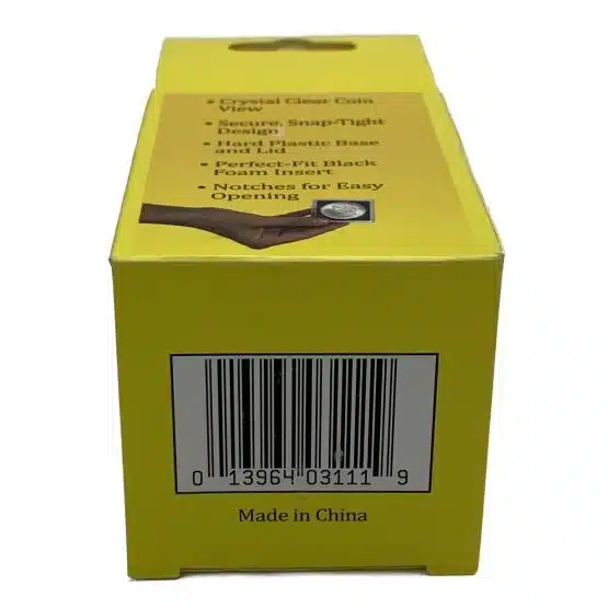 - Interior: Equipped with a black EVA foam insert that securely holds the coin in place while providing a striking backdrop to highlight its details.