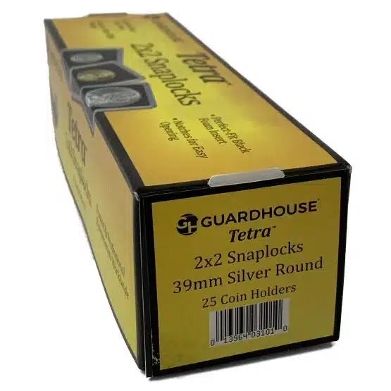 The Tetra Guardhouse 2×2 coin holders for silver rounds is generally an ideal solution for reliable and secure coin storage. This Tetra holder features a black foam interior to protect coins from scratches and damage while offering a sleek display. Additionally, their made from durable acrylic plastic. Lastly, the 2×2 coin holder is acid-free, making them perfect for long-term preservation of valuable coins.