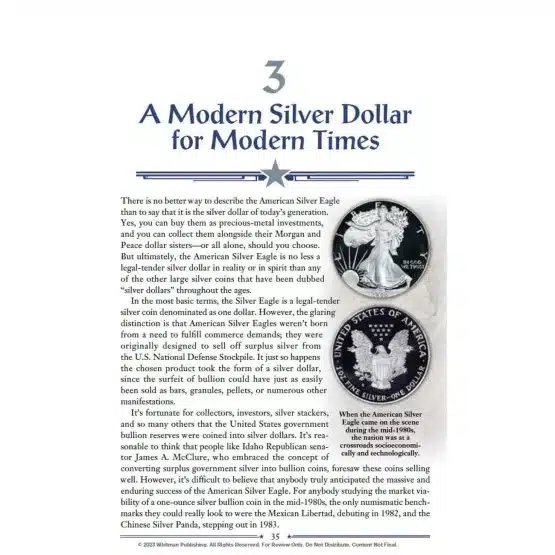 In conclusion, American Silver Eagles receive the treatment readers have come to expect from the Bowers Series; in this fascinating new reference book by award-winning author Joshua McMorrow-Hernandez, readers will find, first and foremost, behind-the-scenes history. Additionally, the book offers knowledgeable advice for collectors and investors. Moreover, it provides valuable guidance on grading, storage, cherrypicking for quality, and other tips for the wise acquisition of these well-liked coins.