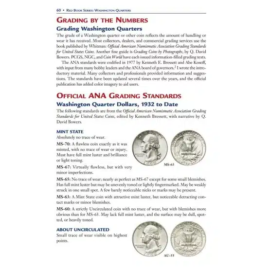 To begin with, the Washington Quarters Book is an expanded and updated, all-new third edition. It’s also an essential resource for both novice and seasoned coin collectors of all levels. Overall, this comprehensive study delves into the rich history of one of America’s most beloved coins, the Washington Quarter. It also features engaging narratives and extensive research by esteemed numismatist Q. David Bowers.