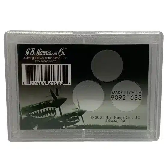 Introducing the Frosty Flying Tigers Snap Lock Case, designed specifically for the steel cent series. Further, HE Harris designed this product from premium, crystal-clear frosted polystyrene that ensures maximum visibility of your wartime steel cents. Each display holder protects the coin and also showcases unique and beautiful artwork, making it an excellent addition for collectors.