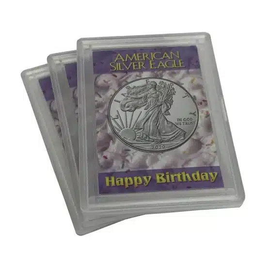 In conclusion, the Frosty “Happy Birthday” coin holders for the Silver American Eagle Bullion coin remain a top choice for collectors. They generally offer both protection and a festive presentation for your treasured coins or as gifts to fellow enthusiast.