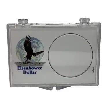 Elevate your collection by acquiring the Eisenhower Dollar snap lock holder. Its crystal-clear design not only ensures durability but also beautifully showcases your coins. Holds the Eisenhower or better known as the IKE Silver Dollar. So, don’t miss the opportunity to enhance your display, shop for yours today!