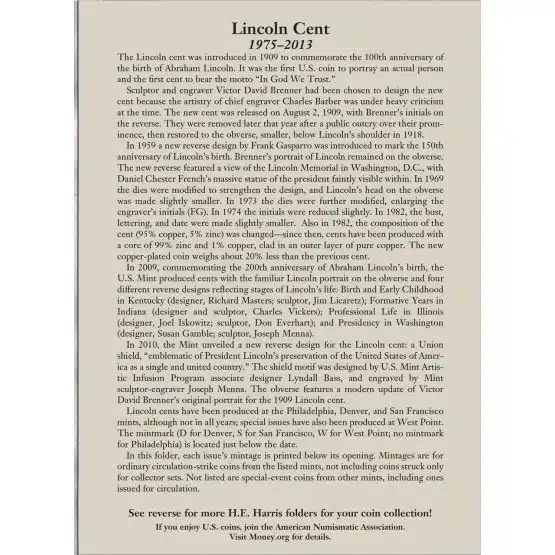H.E. HARRIS Coin Folder Lincoln Cent #3 (1975-2013)
