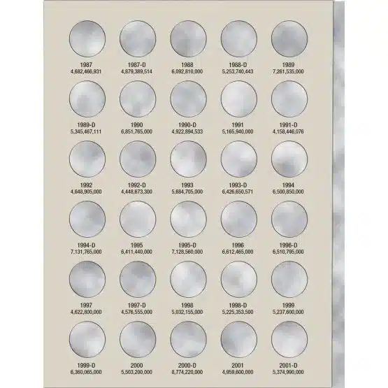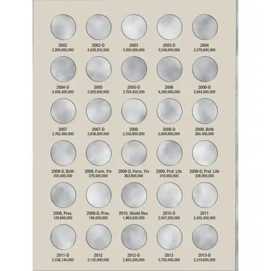 This tri-fold folder, designed to open flat, also allows for a complete view of all your coins at once. With a total of 90 openings, you’ll be able to secure and showcase your collection respectively. All openings have the year, mint mark, and mintage, basically this folder is perfect for organizing and displaying your collection.