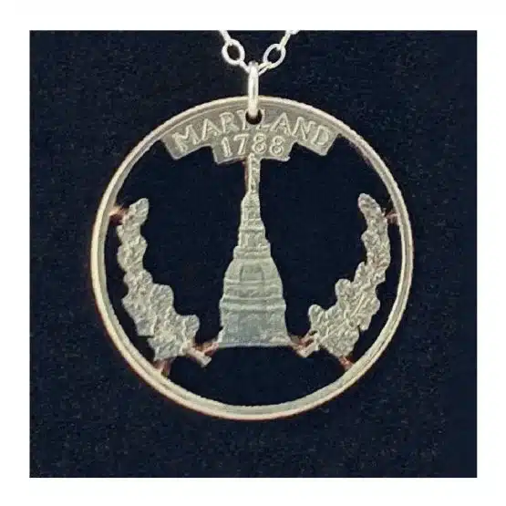 - Authentic Maryland state quarter transformed into a necklace