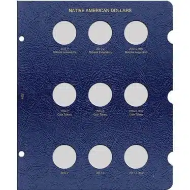 Introducing the Native American Dollar coin album pages for Philadelphia, Denver, and San Francisco Mints designed explicitly for Whitman albums. Generally, as an add-on feature for specific-sized coins from 2015 to 2017.