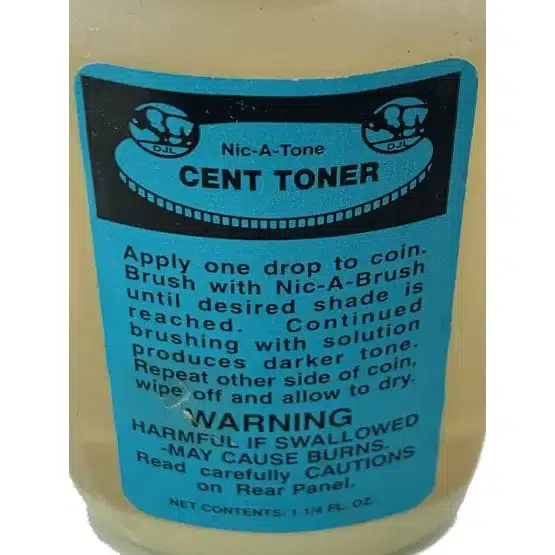 Introducing Nic-A-Tone copper toner, the overall solution for coin collectors seeking to enhance the beauty of their copper and brass coins. This specially formulated 1.25-ounce bottle cleans and re-tones coins, providing a more natural appearance compared to traditional cleaners. Additionally, with multiple applications, users can achieve desired darkening effects, making it an essential tool for maintaining a stunning collection.