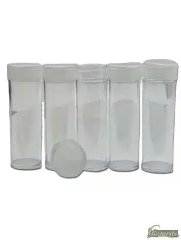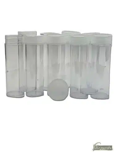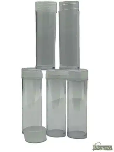 Nickel Coin Tubes, Round, by BCW. These clear plastic nickel coin tubes with milky unbreakable screw-on caps keep your coins safe. Each tube holds 40 nickels without the wrapper. The round tubes are made of crystal clear polystyrene, an inert plastic that is safe when in contact with coins. Designed to accommodate coins 21.21 in diameter, tube depth 79.1mm