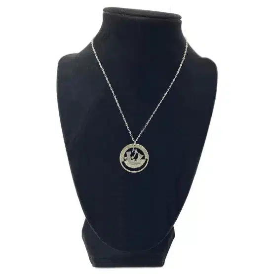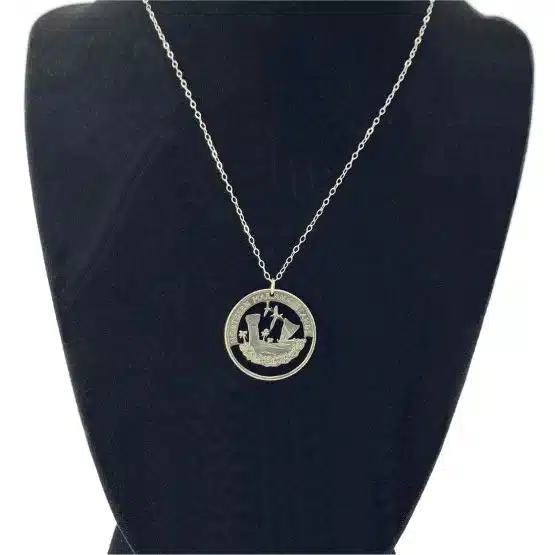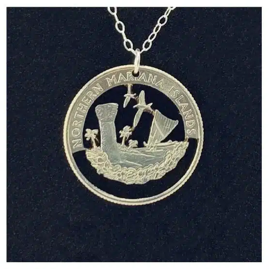- Authentic Northern Mariana Islands quarter cut into a striking necklace design