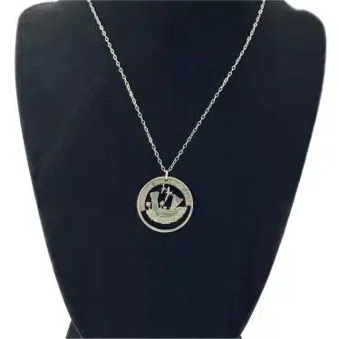 Showcase state pride with the exquisite Northern Mariana Islands Cut Coin Necklace. Indeed, this stunning piece is a remarkable addition to the popular trend of coin-cut jewelry, making it perfect for anyone who cherishes their roots or loves unique accessories. Furthermore, the necklace serves as a statement of identity and style, reflecting beauty and heritage.