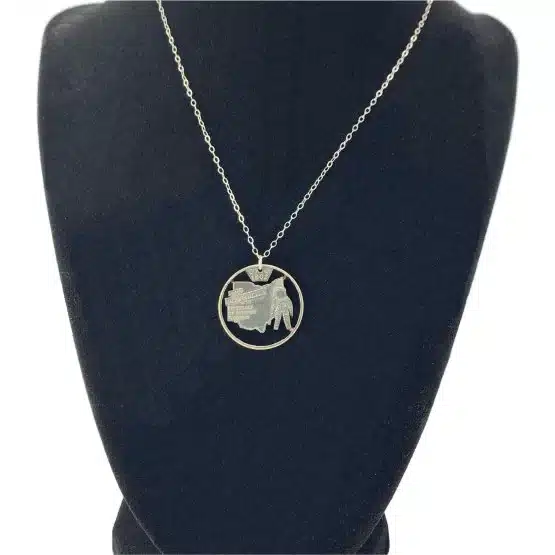 Showcase state pride with the exquisite Ohio State Necklace, a stunning addition to the popular trend of coin-cut state jewelry. Furthermore, this necklace is perfect for anyone who cherishes their roots or loves unique accessories. In addition, it serves not just as a piece of jewelry; rather, it’s a statement of identity and style, beautifully captured in this cut coin necklace design.