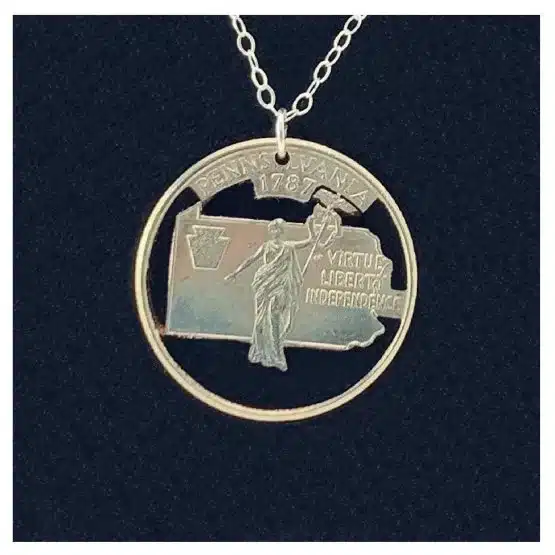 - Made from authentic Pennsylvania state quarter, cut into a stunning pendant.