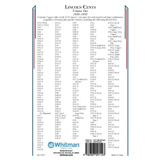 Introducing the Whitman Penny Coin Albums, meticulously designed for collectors of Lincoln Cents dated from 1909 to 1995. Moreover, this trusted Whitman Classic® coin album is a perfect addition to any distinguished collection, providing both elegance and functionality in coin storage.
