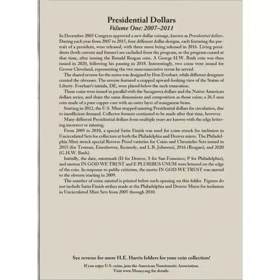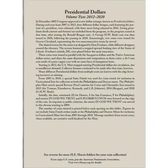 - Historical Reference: Each folder provides valuable historical background, mintage data, and also series details for the Presidents featured on the coins.