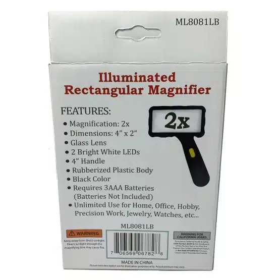 Introducing the 2x Rectangular Magnifying Glass with Light—an essential tool designed for those who require precision and clarity. In addition, this powerful magnifier features a large 4″ x 2″ glass lens that provides 2x magnification, allowing users to observe complex details with ease.
