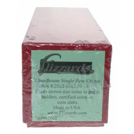 Introducing the red Guardhouse single row crown storage box for collectors, designed to specifically organize and store crown size coins in paper holders. Basically, the crown storage box holds paper holders or certified coin slabs and measures 8.25×2.63×2.87 inches. This generally makes it an essential accessory for any serious coin collector.