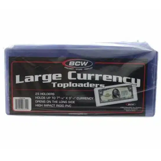 In conclusion, investing in BCW Toploaders Large Currency Holders protects and displays your valuable items stylishly. Made from high-quality materials, they prevent damage such as bending and creasing while providing crystal-clear visibility for proud showcasing. An essential addition for collectors or those preserving cherished pieces, BCW top loaders enhance both protection and presentation. Therefore, order your BCW toploaders for large currency and start organizing and displaying your collection today!