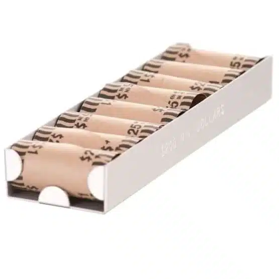 - Holds: Wrapped Rolls of Penny, Nickel, Dime, Quarter, Half Dollar or Small Dollar