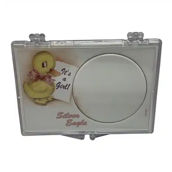 Display your Silver American Eagles beautifully with our high-quality “It’s a Girl” Duck snap lock coin holders. These holders provide the perfect showcase for a child’s very first collection of valuable coins. Don’t miss out on this opportunity to order yours today, as supplies are limited!